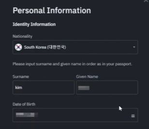 여권상의 영문 이름과 본인의 생년월일을 입력합니다.